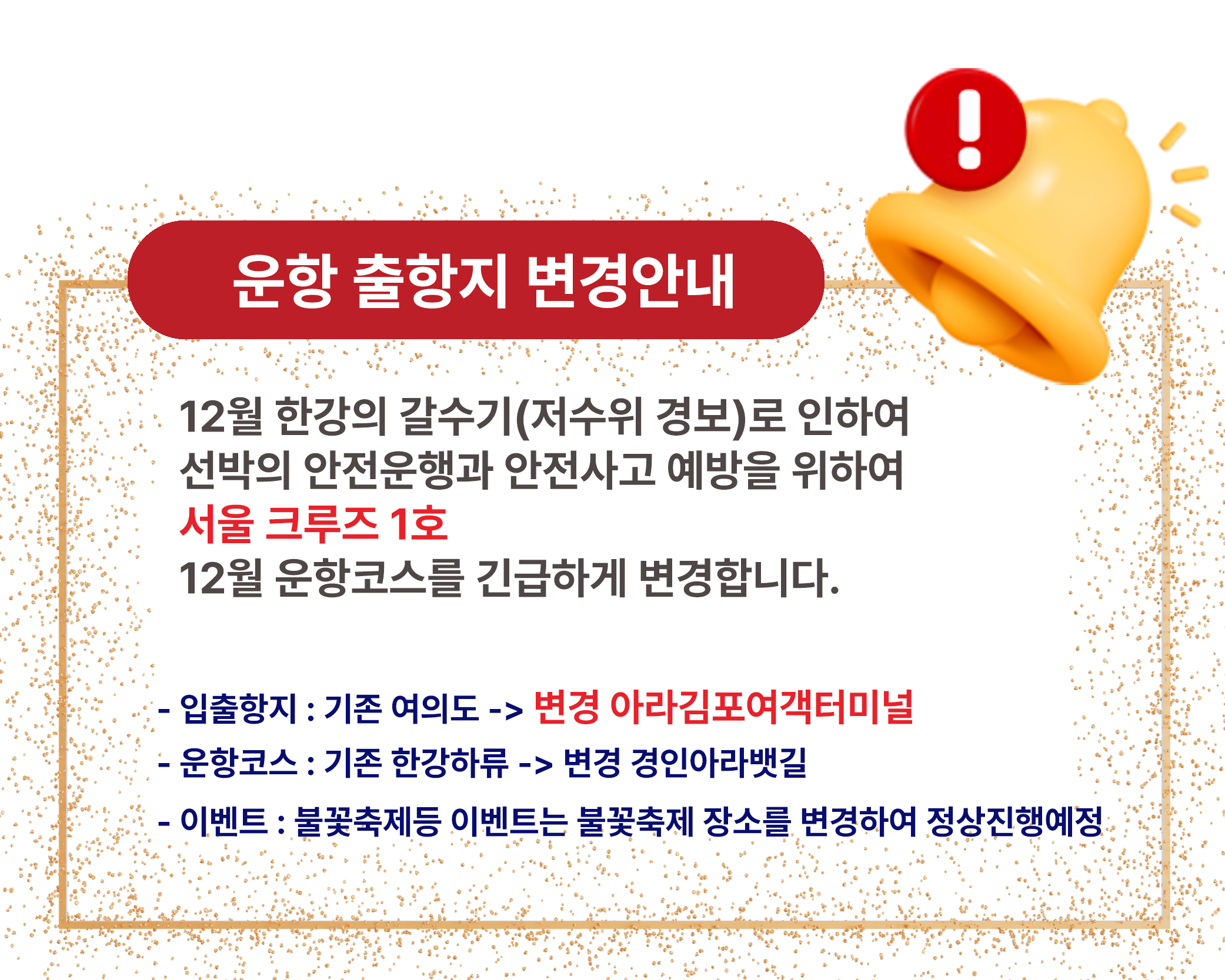 ※ 출항 시간은 변경될 수 있으며, 예약자분들께는 미리 안내드립니다.